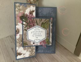 Bonjour, Pour le 3éme tutoriel estival, je te propose une carte au pli amusant. Derrière une jolie étiquette, un joli message, tu pourras cacher un deuxième message, une photo, une invitation. J’ai choisi la collection « floraison sauvage » pour cette présentation. J’aime ses couleurs, ses fleurs. Le lot « hexagone chaleureux » est idéal pour une étiquette simple …