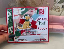 Aujourd’hui j’avais envie de partager une pause créative, improvisée, avec toi. J’ai donc choisi une carte simple, facile à réaliser, mais avec un joli jeu de pliage. Voici la 2ème version que nous avons réalisé aujourd’hui dans ma collection coup de coeur « Tradition de Noël ». J’ai repris les poinçons « étiquettes traditionnelle », mais j’ai pris une …