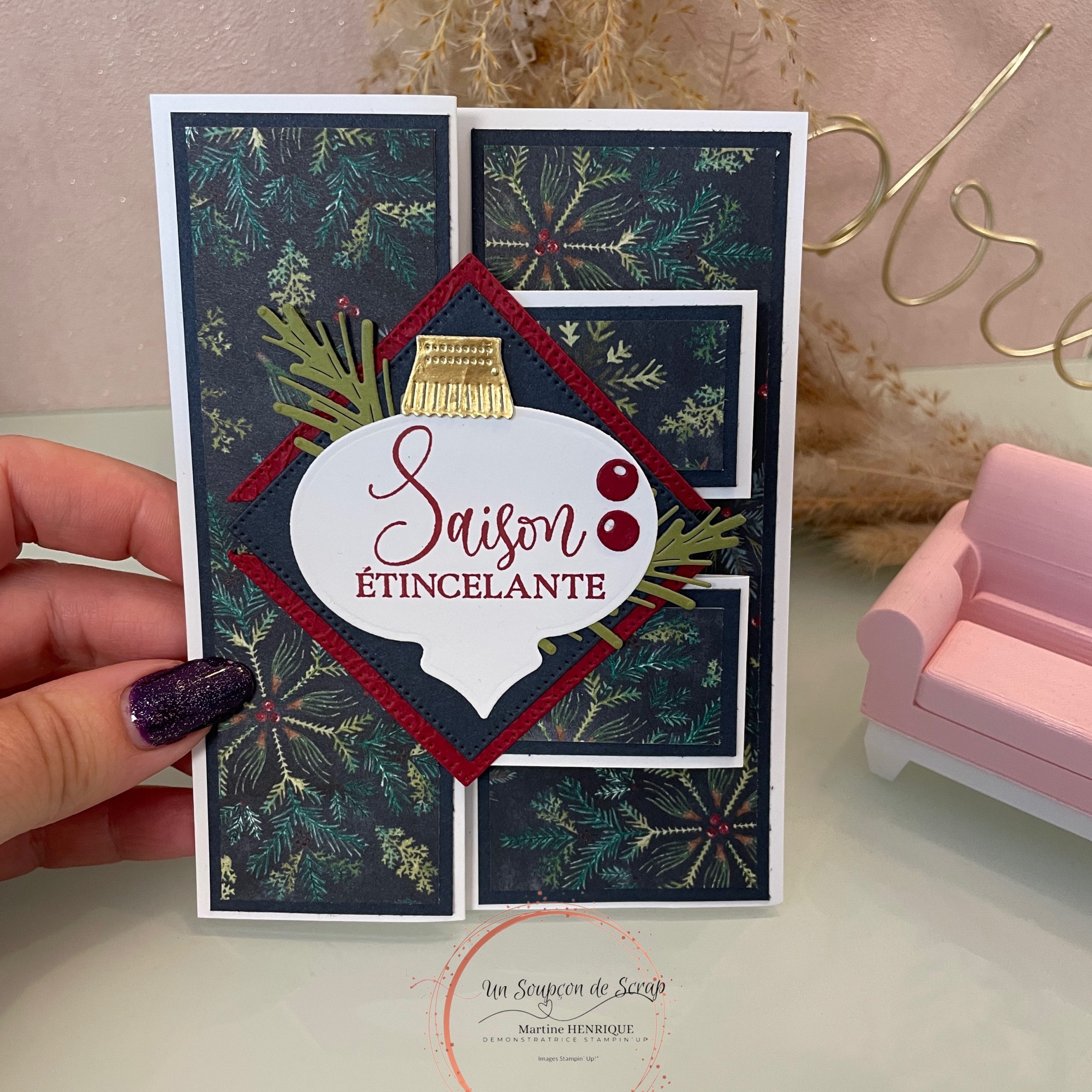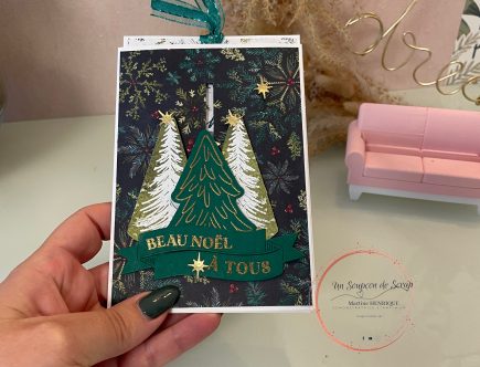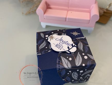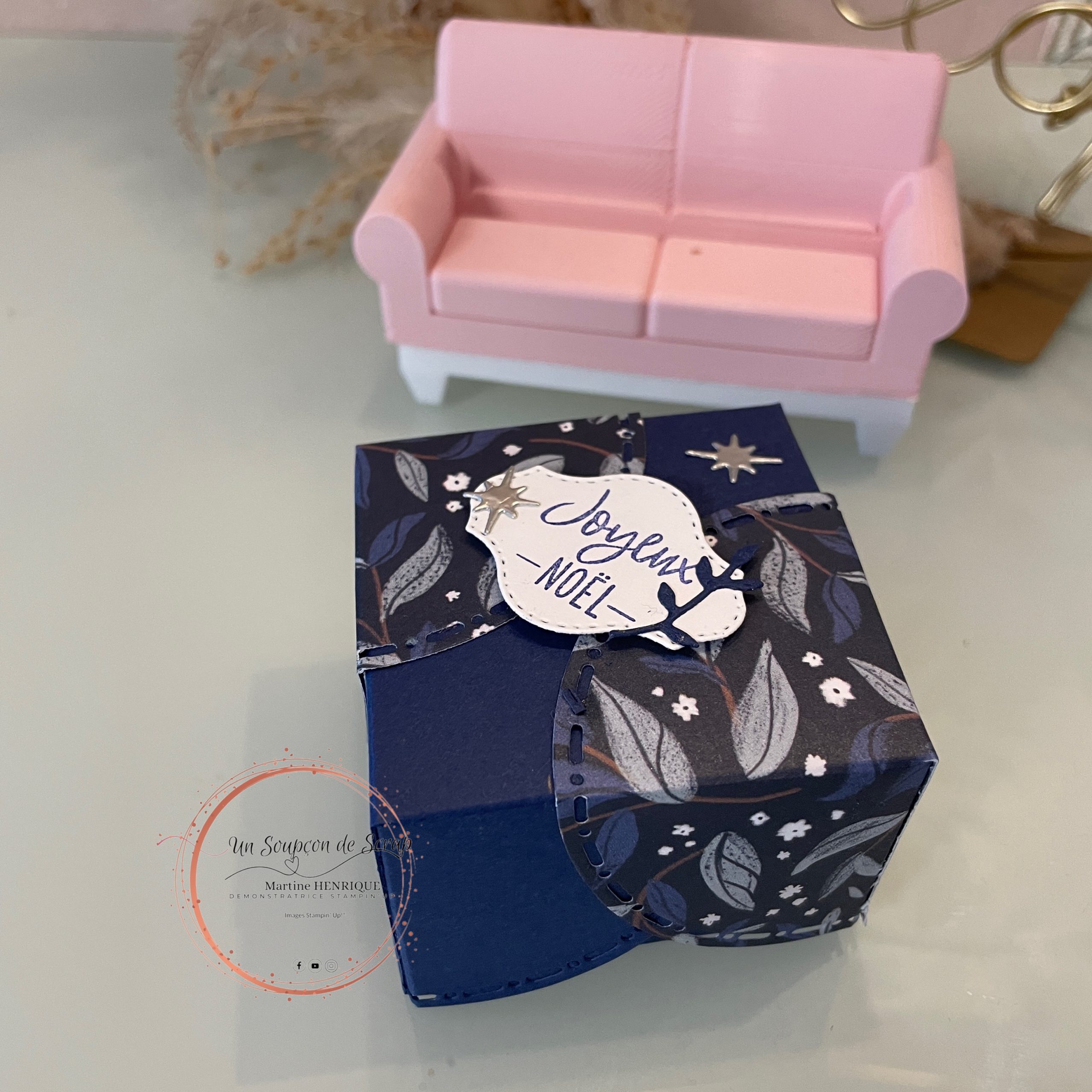 Envie d’un mercredi créatif ? J’ai ce qu’il te faut : une jolie boite à offrir, à glisser dans une assiette, mais faite avec des ronds. Es tu plutôt Noël traditionnel en vert, ou Noël paisible en bleu ? Moi j’avoue que je serai plutôt « Flocons de pin élégant » que « Jardin paisible » pour ma table …
