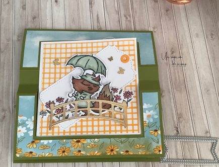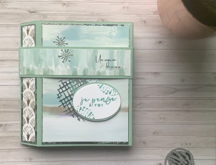 Cette semaine je t’ai proposé lors de notre live créatif une carte originale : une « carte balancelle ». Pour fair venir le printemps qui tarde un peu, j’ai choisi la collection « caprices de météo », une de mes préférées dans le mini catalogue. Cette carte te laisse un bel espace pour faire comme moi une « scénette ». Et …