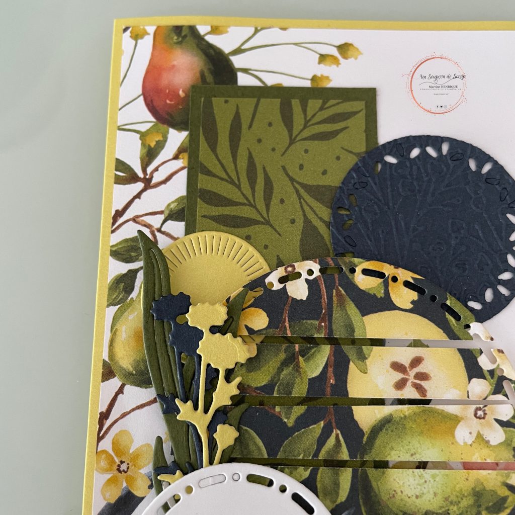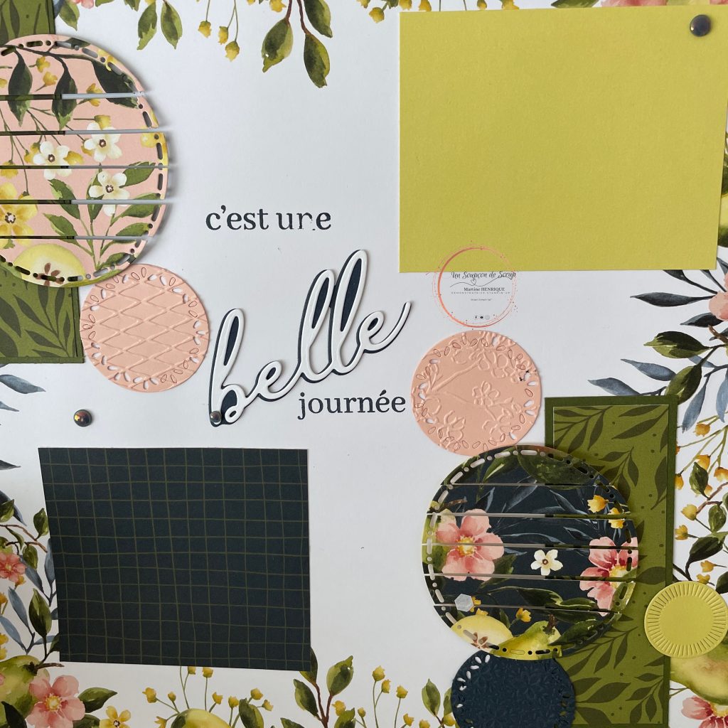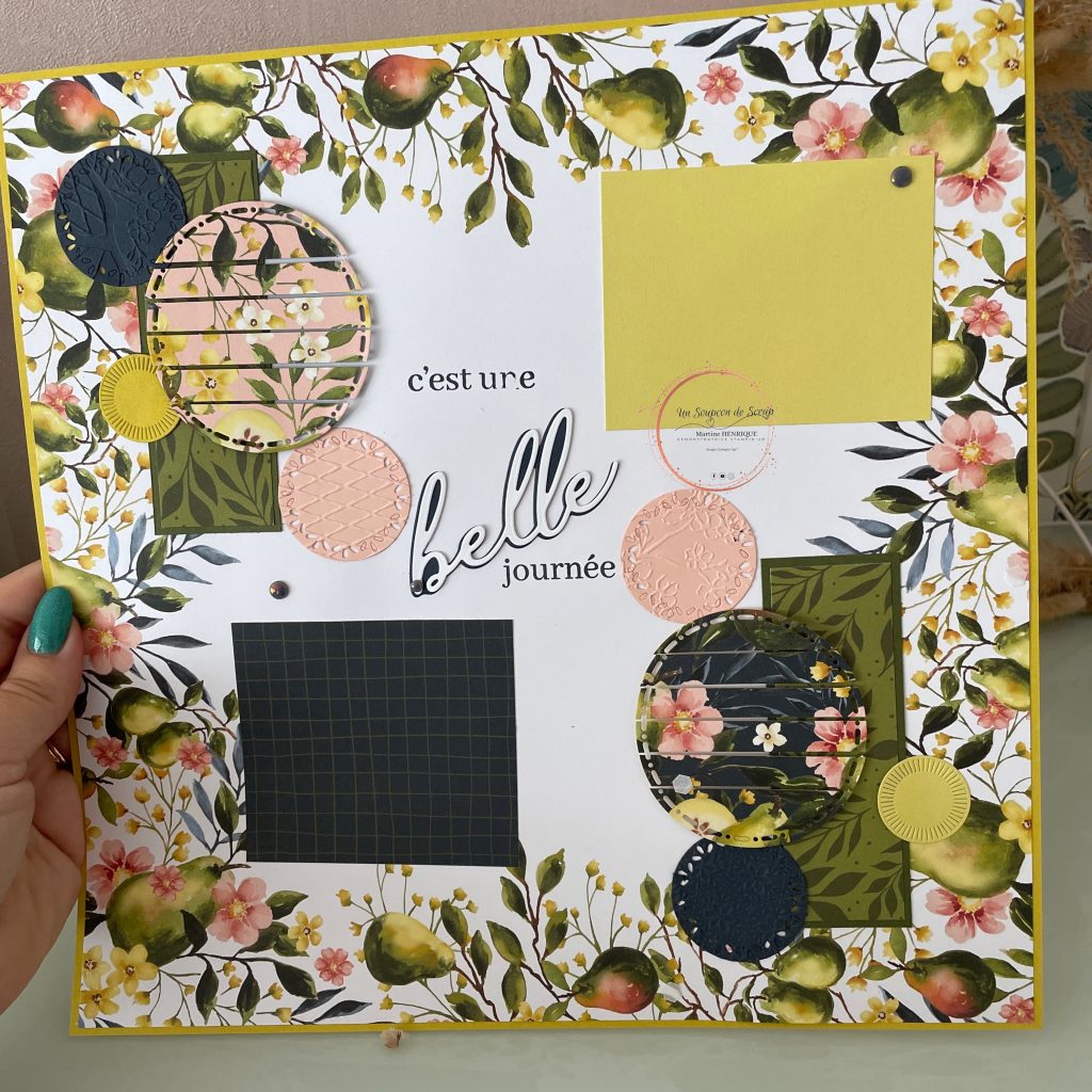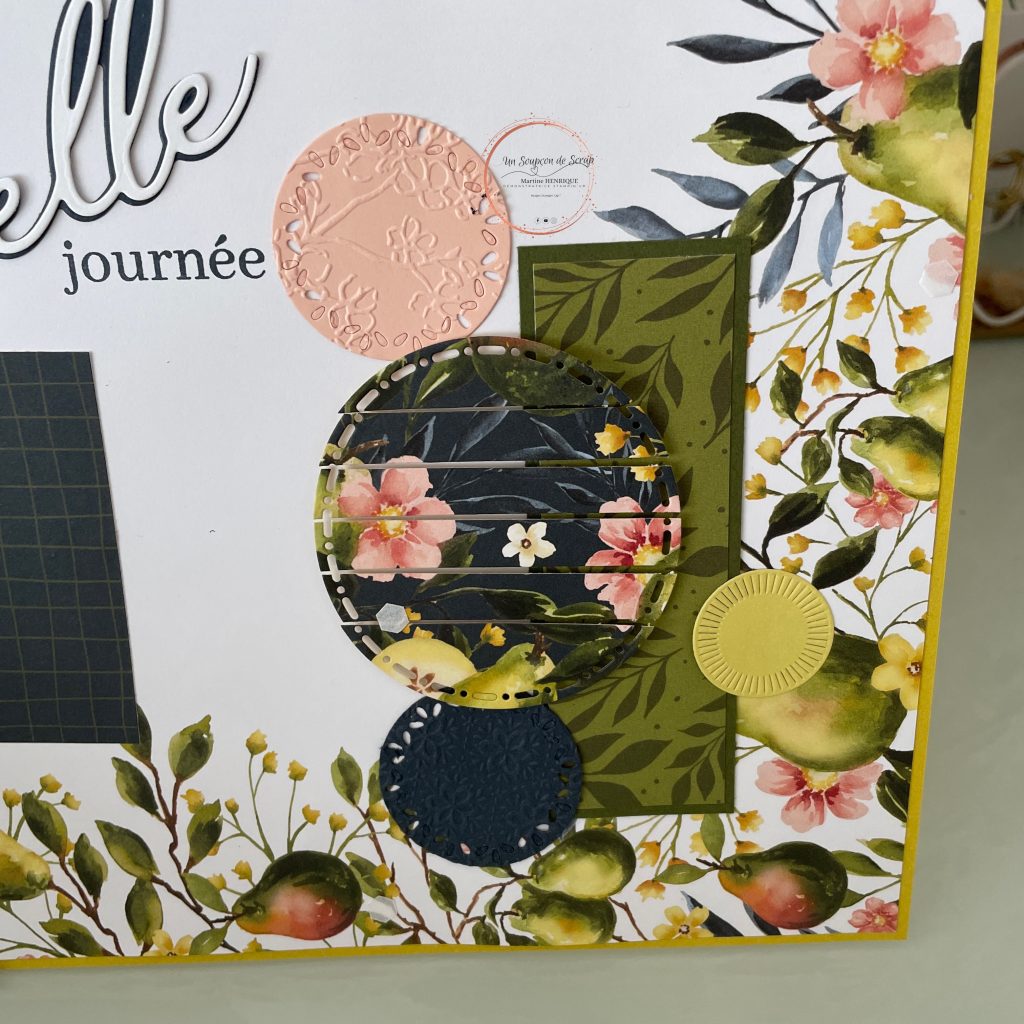 J’ai utilisé la magnifique page de « poires picturales » et les découpes « belles joies », et j’avoue mettre bien amusée à la faire.