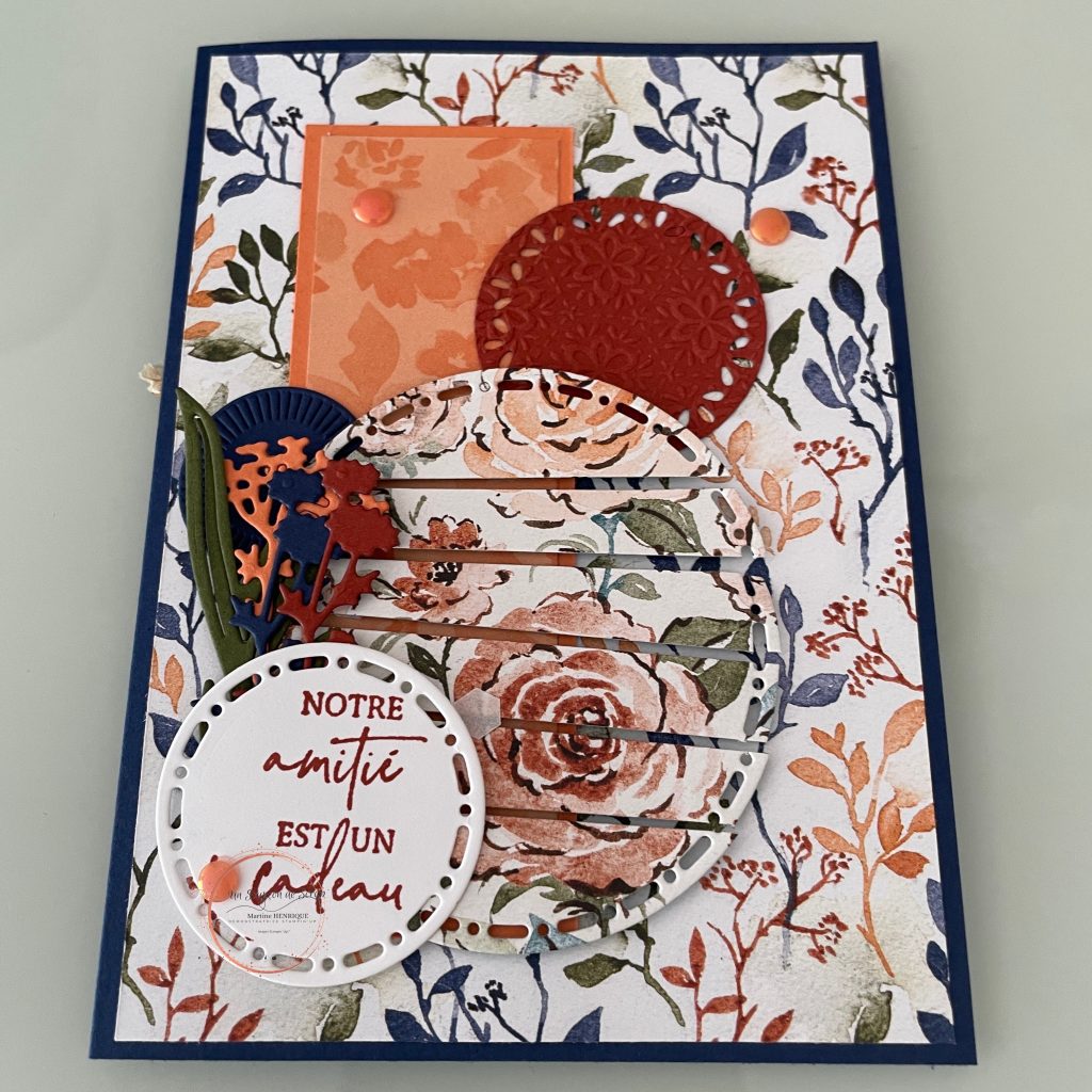 C’est une superposition de ronds, embossés, découpés, colorés… qui font le charme de cette carte.