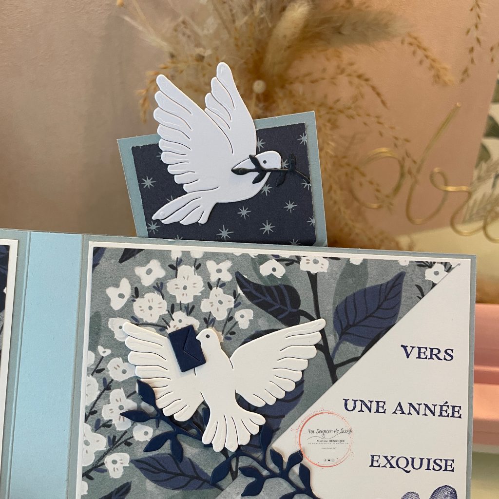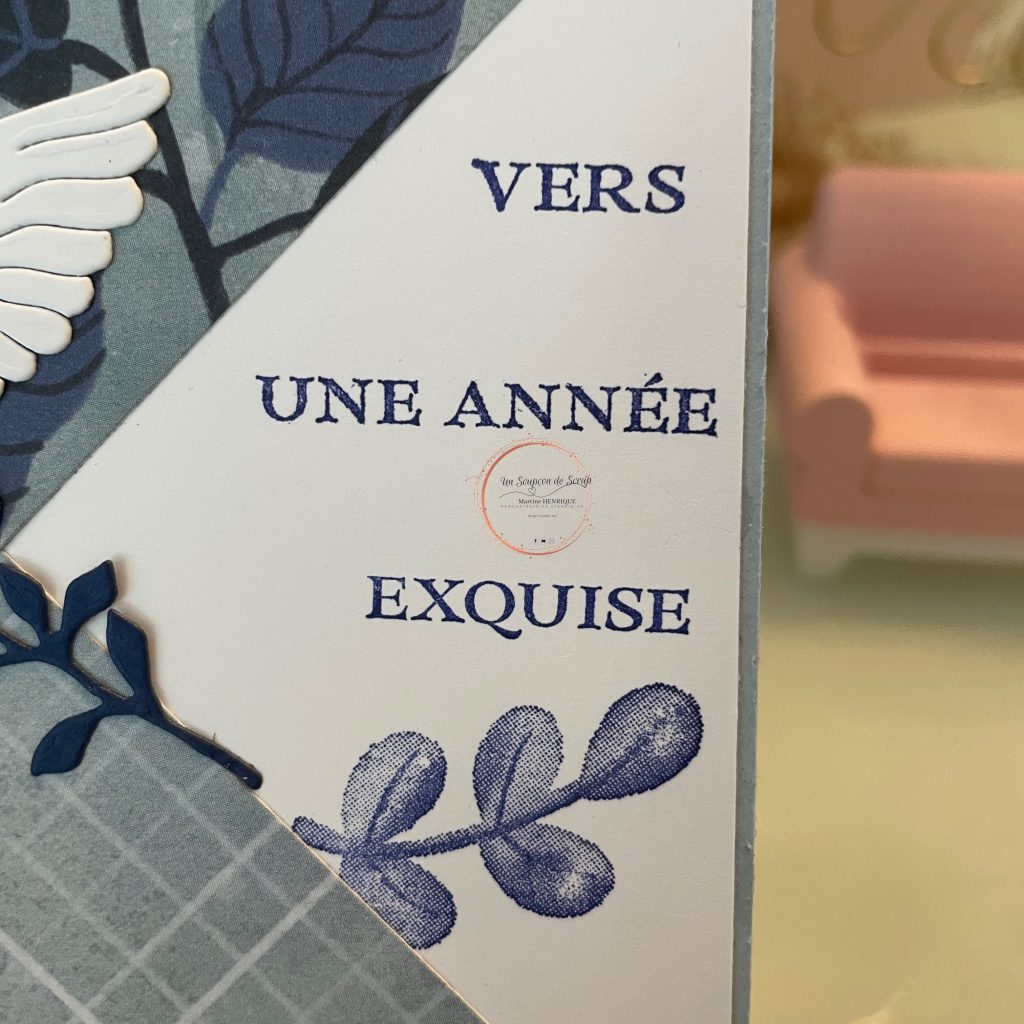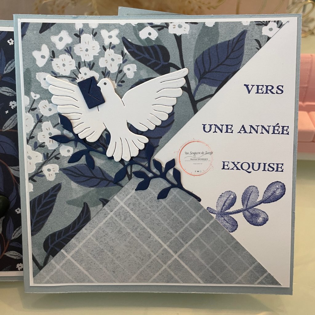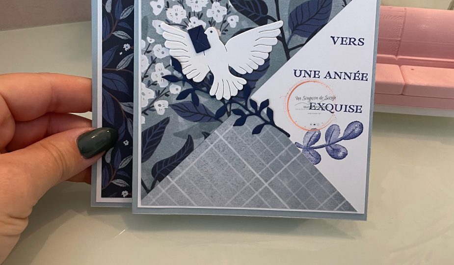 J’ai choisi pour cette carte la collection « Jardin paisible » qui se travaille en toute saison, avec son joli combo de bleu.