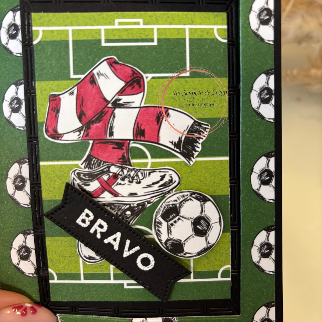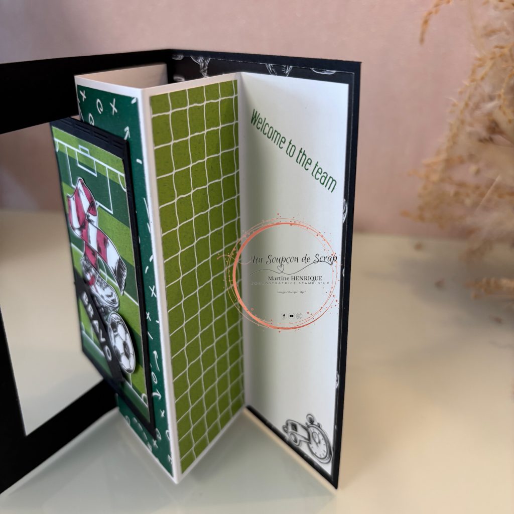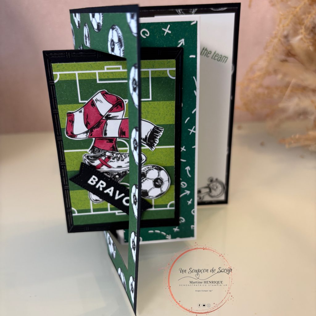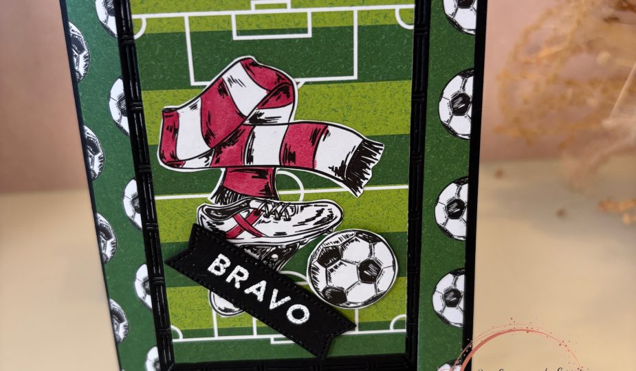 Pour cette deuxième version, je me suis lancé un petit défi : utiliser la collection « Pluie de buts » de Stampin’ Up!. Comme le thème du foot ne m’inspire pas forcément au départ, c’était justement l’occasion parfaite de sortir de ma zone de confort et de relever un joli challenge créatif. ⚽✨