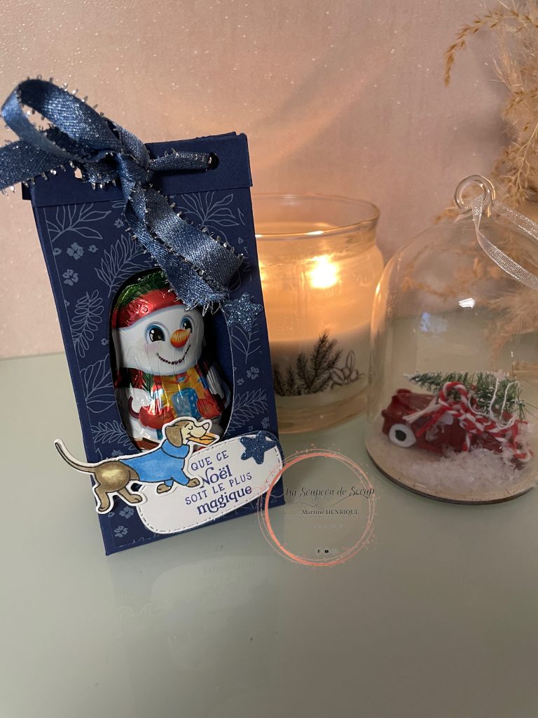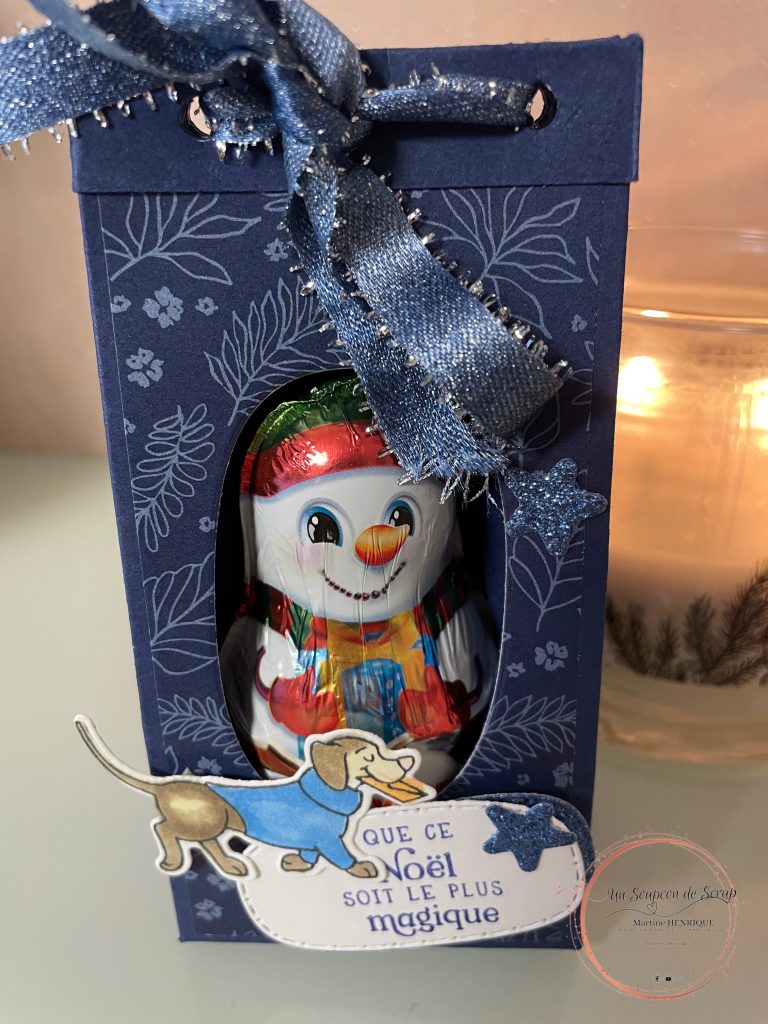 Si tu veux offrir des petits chocolats à la place d’un bonhomme, il suffit d’ajouter à l’intérieur un morceau de papier fenêtre plus grand que ton ouverture.