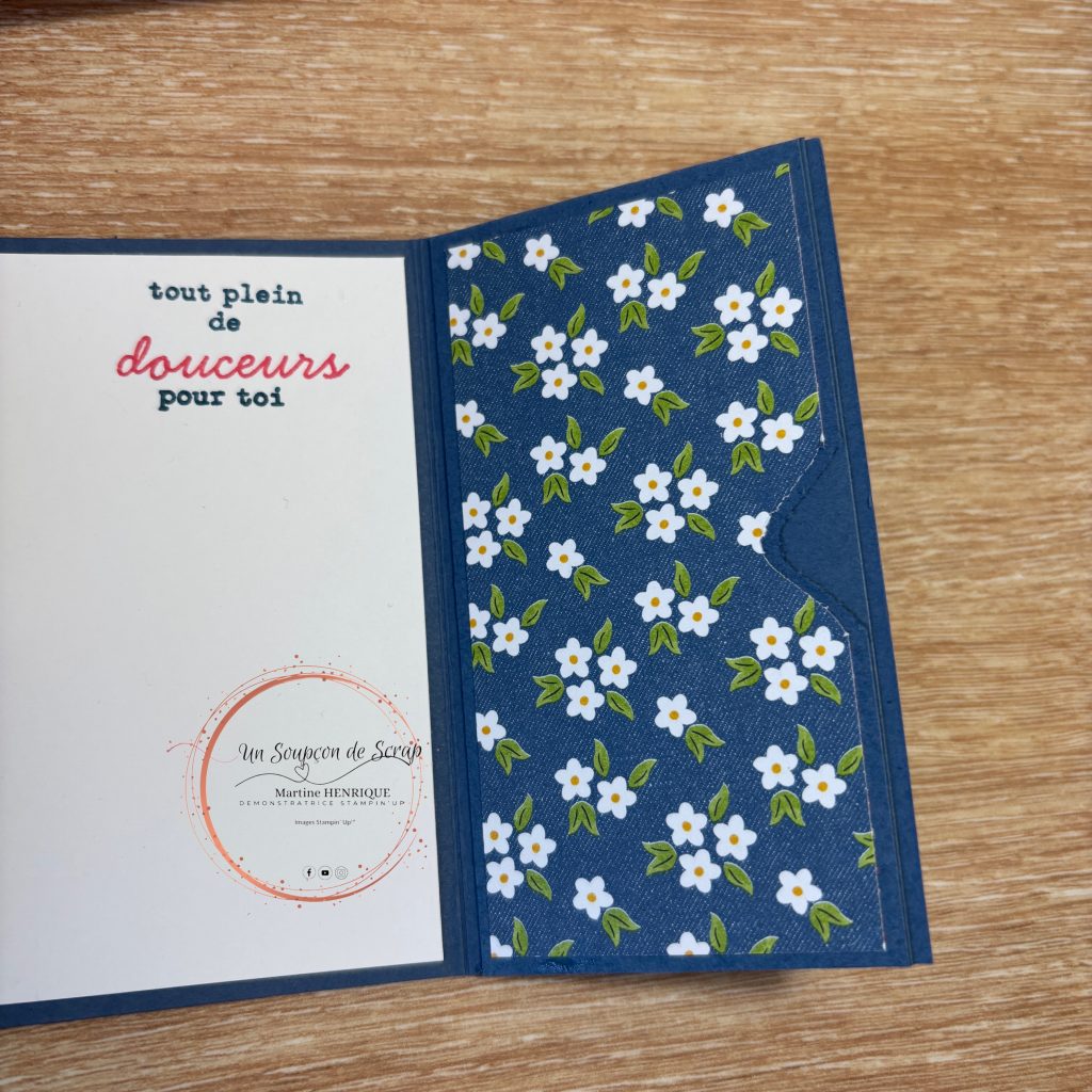 C’est une carte toute en simplicité, comme j’aime en créer de temps en temps. Elle se compose d’une pochette discrète qui accueille délicatement une carte cadeau, pour une surprise tout en douceur 🎁