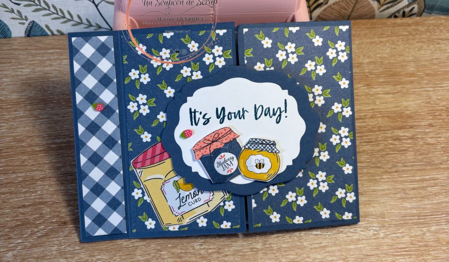 Ce mercredi, lors de notre pause créative, nous avons réalisé ensemble une carte à la fois simple et pleine d’effet : une carte cadeau fun, avec un petit mécanisme qui cache joliment une surprise à l’intérieur 🎁