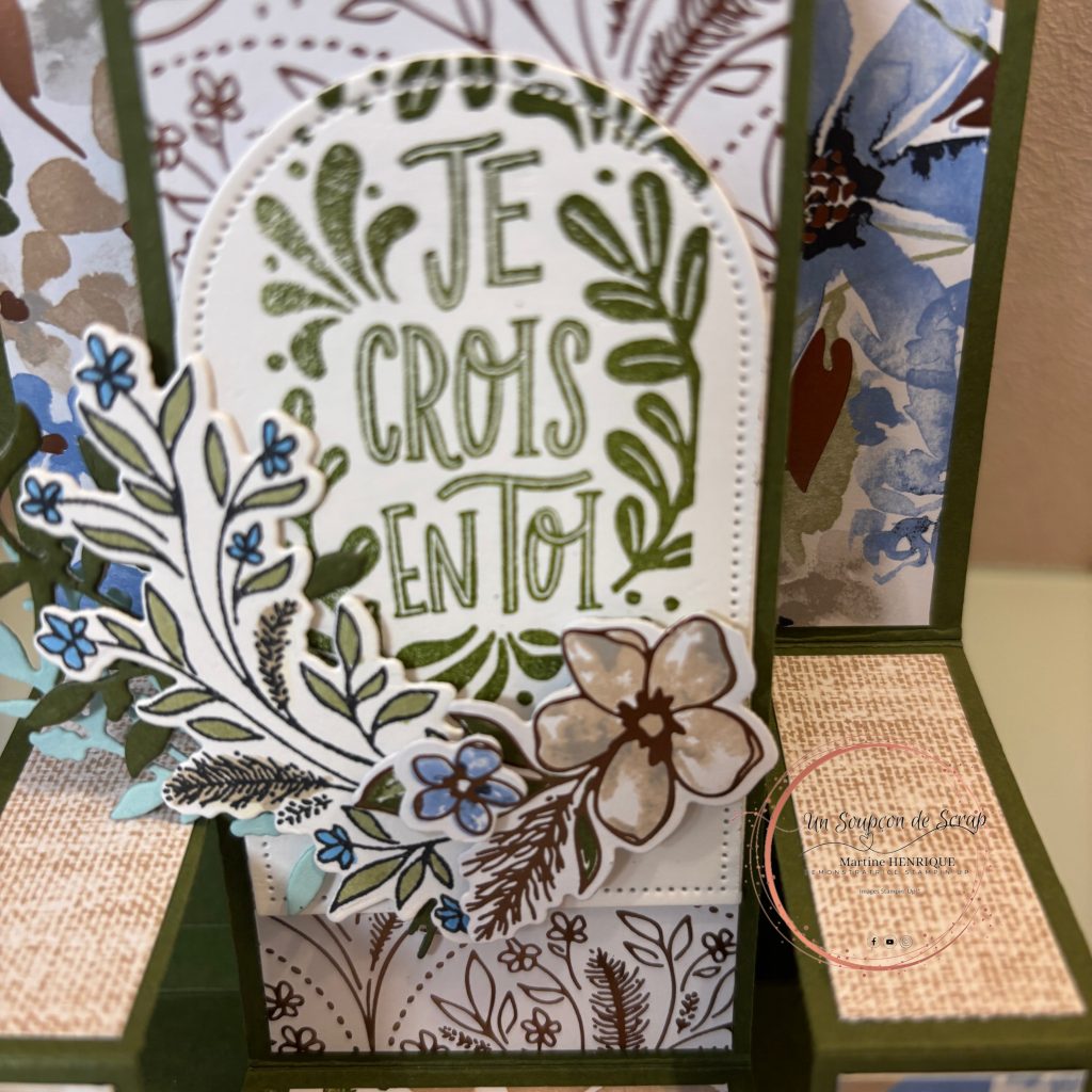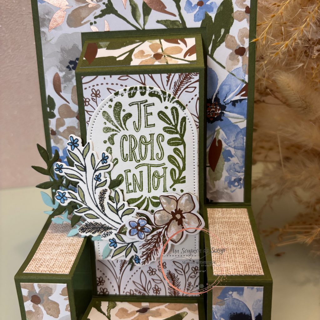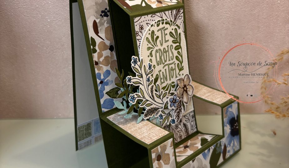 Aujourd’hui, je te propose de découvrir une carte un peu particulière, qui joue avec les volumes et les perspectives. J’ai imaginé une structure en relief pleine de douceur, où chaque niveau vient mettre en valeur les jolis motifs fleuris et créer un effet de profondeur très élégant.
