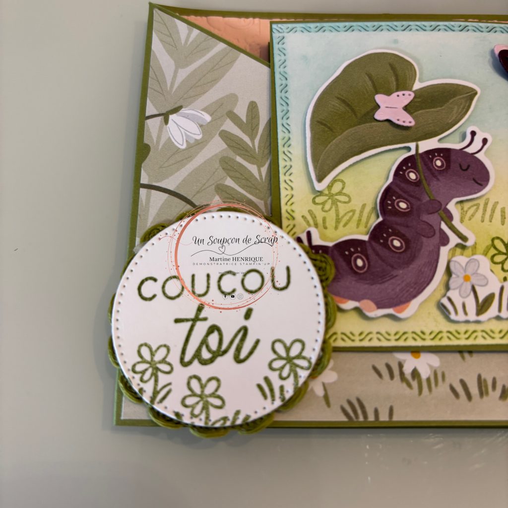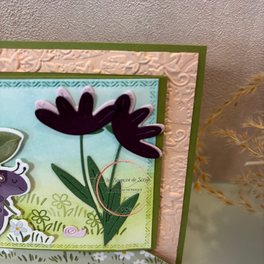 C’est une carte simple, sans technique que je te propose. Mais elle permet justement de mettre l’accent sur la décoration.