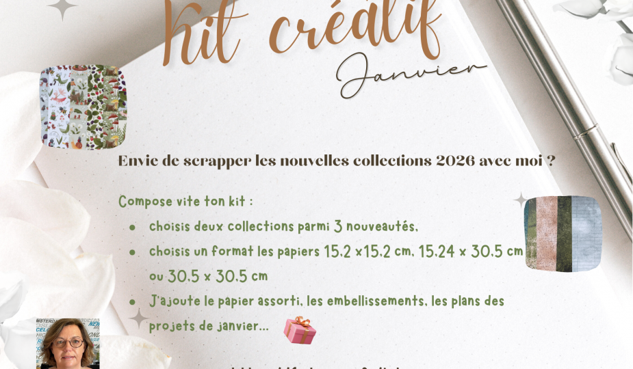 Laissez-vous séduire par des collections toutes fraîches, aux lignes inspirantes, aux couleurs harmonieuses et aux détails qui donnent envie de créer sans limite. Le kit de janvier que je vous prépare est une véritable invitation au renouveau, pour démarrer l’année en beauté et donner vie à vos plus belles idées créatives.